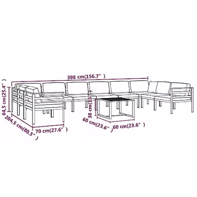 11-delige Loungeset met kussens aluminium antracietkleurig