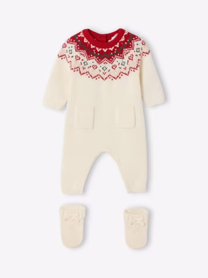 2-delige babyset met tricot babypakje + sokken in thema Kerst ecru