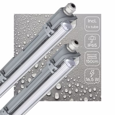 Deze LED TL-armatuur is stof- en waterbestendig (IP65), wat betekent dat het geschikt is voor gebruik in omgevingen waar vocht en stof aanwezig zijn, zoals garages en magazijnen. De behuizing is gemaakt van sterk materiaal en biedt extra duurzaamheid.