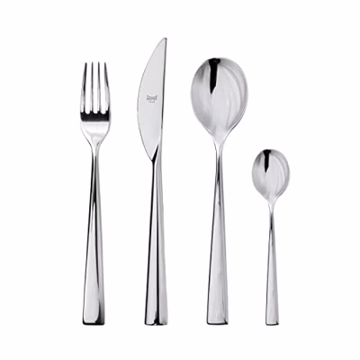 24 - delige bestekset bestaande uit 6 lepels, 6 vorken, 6 messen en 6 koffie lepels.Dit bestek kan in de vaatwasser. Al onze Mepra bestekken worden gefabriceerd van hoogwaardig roestvrijstaal (RVS) 18/10. RVS is een vorm van hooggelegeerd staal. Dit bevat meer dan 5% aan legerings-elementen en is ijzersterk. RVS is bestand tegen oxidatie en corrosie (roest). Deze eigenschap is te danken aan de chemische verbinding die chroom aangaat met zuurstof. Door die chemische verbinding vormt zich een oxidehuid op het staal. Door het gebruik van hoogwaardig RVS 18/10 blijft de kwaliteit uitstekend, ook als u het vaak gebruikt.Het bestek op tafel: Hoe moet je het bestek eigenlijk neerleggen? Het bestek moet je neerleggen waar je het oppakt. De lepel en het mes liggen dus rechts van het bord en de vork ligt links. Het bestek voor het nagerecht leg je boven het bord neer als je het bij aanvang van de maaltijd al op tafel wilt hebben. Gangbaar is ook om het bestek voor het nagerecht pas op de tafel te plaatsen als het tijd is voor het nagerecht (of mét het nagerecht).De Mepra Energia bestekset is een stijlvol kwaliteitsbestek voor een aantrekkelijke prijs.