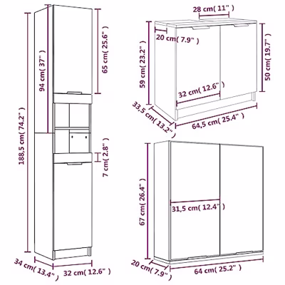 3-delige Badkamerkastenset bewerkt hout wit