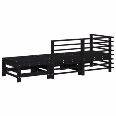 3-delige Loungeset massief grenenhout zwart