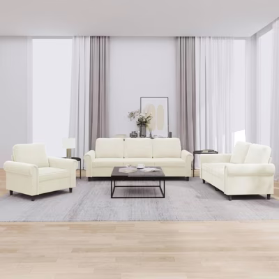 3-delige Loungeset met kussens fluweel crèmekleurig