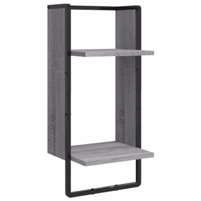 4-delige Wandschappenset met stangen bewerkt hout grijs sonoma