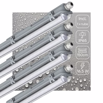 Deze LED TL-armatuur is stof- en waterbestendig (IP65), wat betekent dat het geschikt is voor gebruik in omgevingen waar vocht en stof aanwezig zijn, zoals garages en magazijnen. De behuizing is gemaakt van sterk materiaal en biedt extra duurzaamheid.