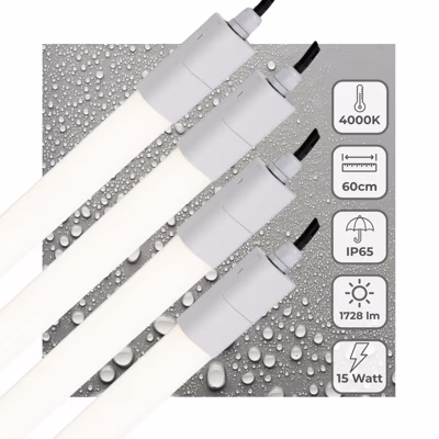 Dankzij hun IP65-gecertificeerde behuizing zijn deze LED TL armaturen uitstekend bestand tegen stof en water(stralen). Je voelt het al aankomen: ze zijn dan ook uitermate geschikt voor buitengebruik en vochtige ruimtes.