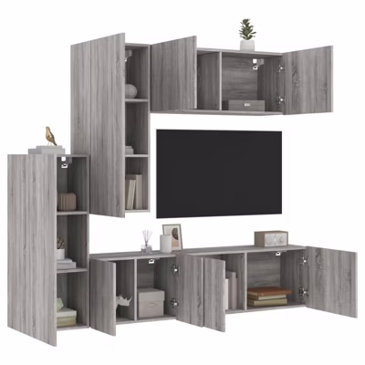 5-delige Tv-wandmeubelset grijs sonoma eikenkleurig