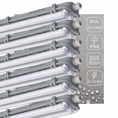 De LED TL-armatuur is bestand tegen water en stof (IP65), waardoor het perfect is voor gebruik in vochtige en stoffige omgevingen, zoals garages en magazijnen. De behuizing is sterk en duurzaam om jouw armatuur te beschermen tegen beschadigingen (IK08).