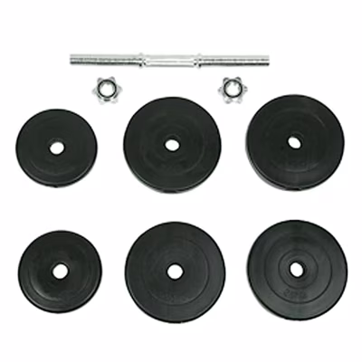 Deze veelzijdige halterset is perfect voor het trainen van borstspieren, biceps, armspieren, triceps en rugspieren. De set bevat 4 gewichten van 2,5 kg, 2 gewichten van 1,25 kg en een halterstang van 2,5 kg met bevestigingsbouten en heeft een totaalgewicht van ongeveer 15 kg. Met deze set kunnen gebruikers de gewichten kiezen die ze willen gebruiken voor verschillende oefeningen. De structuur van het handvat biedt maximale grip zodat de halterstang stevig in je handen ligt. Deze dumbbell heeft stervormige bevestigingsbouten om de gewichten op hun plaats te houden. Deze set is goed te combineren met onze halterbanken of andere haltersets.