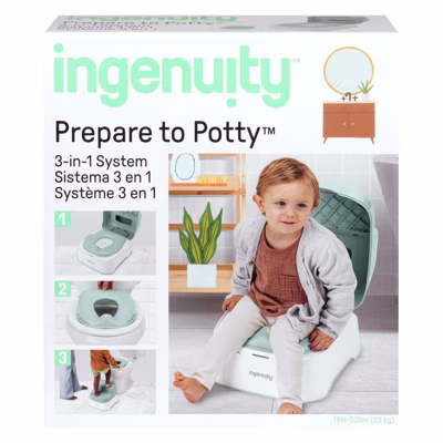 Maak de zindelijkheidstraining eenvoudiger met het Prepare to Potty 3-in-1 System van Ingenuity! Dit slimme systeem groeit mee met je kind en biedt drie functies in één: een kinderpotje, een toiletverkleiner en een dubbele opstap. Zo doorloopt je peuter elke fase van het zindelijk worden met gemak en comfort. Het Kinderpotje 3-in-1 is ontworpen voor gebruiksgemak en hygiëne. De uitneembare pot met handige schenktuit maakt schoonmaken eenvoudig en voorkomt geknoei. Zodra je kind klaar is voor de overstap naar het grote toilet, plaats je de toiletverkleiner eenvoudig op een standaard toilet. Het geïntegreerde spatscherm en handvatten zorgen voor extra stabiliteit en comfort. Met een compact formaat van 37 x 32 x 26,5 cm en een maximale belasting van 23 kg is dit 3-in-1 systeem een must-have voor elke ouder! Kenmerken • 3-in-1 functie: kinderpotje, toiletverkleiner en dubbele opstap • Uitneembare pot met schenktuit voor eenvoudig schoonmaken • Toiletverkleiner met geïntegreerde spatscherm en handvatten • Past op de meeste ronde, ovale en D-vormige toiletten • Opstapje met antislipbodem voor extra veiligheid • Maximale belasting: 23 kg