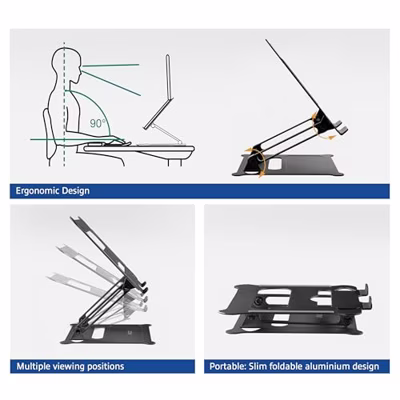 De AC8140 inklapbare laptopstandaard is gemaakt van stevig aluminium en is veelzijdig in gebruik. De standaard is geschikt voor laptops tot 15,6” en heeft verschillende kijkposities voor een betere werkhouding. Dankzij het opvouwbare, lichtgewicht ontwerp is de laptopstand gemakkelijk mee te nemen. Antislip rubberen pads houden de laptop op de plaats. De open structuur zorgt voor een maximale luchtstroom.
