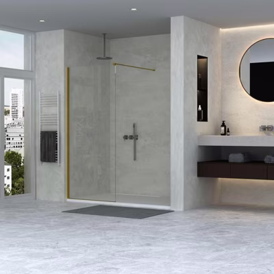 Adema Sparkle 2.0 Inloopdouche - 70x200cm - wandprofiel - stabilisatiestang - helder glas - goud mat SW1381713/SW1381723/SW1381727