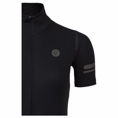 AGU Rain Fietsshirt Performance Dames - Zwart - XL. De voorganger van dit fietsshirt is ontwikkeld voor de renners van Team Jumbo-Visma. Hun visie was simpel, ze wilden een waterdicht fietsshirt met korte mouwen en een maximaal ademend vermogen. Dit fietsshirt is waterdicht, lichtgewicht en zoals gevraagd heeft het ook een hoog ademend vermogen. Het beschermt je zelfs tegen de wind. * Het shirt is gemaakt van de eVent DVstretch stof, dat speciaal is ontwikkeld om wind en regen tegen te houden zonder in te leveren op ademend vermogen. * Het shirt heeft een waterkolom van 8.000 en een ademend vermogen van 30.000. * Alle naden zijn getapet en dus waterdicht. * Er zijn twee ventilatiepunten en er is een achterzak aan de achterkant van het shirt. * Gemaakt met een YKK rits die gemakkelijk opent en sluit. Hij heeft een ritsgarage aan de bovenkant voor extra comfort. * De siliconen gripper aan de onderkant houdt het shirt perfect op zijn plaats.
