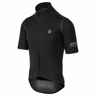 AGU Rain Fietsshirt Performance Heren - Zwart - S. De voorganger van dit fietsshirt is ontwikkeld voor de renners van Team Jumbo-Visma. Hun visie was simpel, ze wilden een waterdicht fietsshirt met korte mouwen en een maximaal ademend vermogen. Dit fietsshirt is waterdicht, lichtgewicht en zoals gevraagd heeft het ook een hoog ademend vermogen. Het beschermt je zelfs tegen de wind. * Het shirt is gemaakt van de eVent DVstretch stof, dat speciaal is ontwikkeld om wind en regen tegen te houden zonder in te leveren op ademend vermogen. * Het shirt heeft een waterkolom van 8.000 en een ademend vermogen van 30.000. * Alle naden zijn getapet en dus waterdicht. * Er zijn twee ventilatiepunten en er is een achterzak aan de achterkant van het shirt. * Gemaakt met een YKK rits die gemakkelijk opent en sluit. Hij heeft een ritsgarage aan de bovenkant voor extra comfort. * De siliconen gripper aan de onderkant houdt het shirt perfect op zijn plaats.