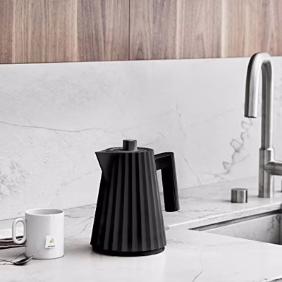 80,95Deze zwarte Plissé waterkoker van Alessi is een eyecather in de keuken. De waterkoker heeft een mooi design en kan gevuld worden met 1 liter water. Het lampje op het handvat geeft aan wanneer het water kookt. De waterkoker is goed geïsoleerd en laat geen warmte door. Een heel fijn apparaat voor een lekker kopje thee.