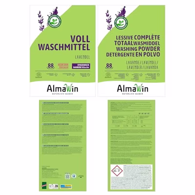 Artikelnummer: 4019555705786 Bekijk alles van AlmaWin > Bekijk meer: Wasmiddel > AlmaWin Waspoeder Universeel met Lavendelgeur - 4,6KG AlmaWin wasmiddel voor intensief gebruik wordt gekenmerkt door zijn uitstekende waskracht vanaf 30°C. Een wasmiddelbooster gemaakt van actieve zuurstof verwijdert zelfs hardnekkige vlekken en voorkomt dat witte was grijs wordt. Het bevat non-GMO-enzymen en rijstzetmeel en zorgt voor een goede grip en gemakkelijk strijken. Dosering afhankelijk van vervuiling en waterhardheid volgens tabel. Voor katoenen en gekleurde was raden wij het wasprogramma aan. Wij raden AlmaWin galzeep aan om vlekken voor te behandelen en AlmaWin zuurstofbleekmiddel voor helderwit wasgoed. Volg de onderhoudsinstructies van de textielfabrikant. Niet geschikt voor wol en zijde. Met lavendelgeur voor een fris ruikende was. Dosering afhankelijk van vervuiling en waterhardheid volgens tabel. Voor katoenen en gekleurde was raden wij het wasprogramma aan. Wij raden AlmaWin galzeep aan om vlekken voor te behandelen en AlmaWin zuurstofbleekmiddel voor helderwit wasgoed. Volg de onderhoudsinstructies van de textielfabrikant. Niet geschikt voor wol en zijde. Doseringshoeveelheden: voor een belasting van 4-5 kg: Waterhardheid: zacht - lichte vervuiling: 40 ml, gemiddelde vervuiling: 60 ml, zware vervuiling: 100 ml Waterhardheid: middel - lichte vervuiling: 50 ml, middelmatige vervuiling: 70 ml, zware vervuiling: 120 ml Waterhardheid: hard - lichte vervuiling: 60 ml, gemiddelde vervuiling: 120 ml, zware vervuiling: 180 ml voor een belasting van 2-3 kg: Doseringshoeveelheid afhankelijk van vervuiling en waterhardheid - 15 ml voor een belasting van 6-8 kg: Doseringshoeveelheid afhankelijk van vervuiling en waterhardheid + 45 ml Handwas: 25ml/5L Gebruik Kan zowel in de wasmachine als voor de handwas gebruikt worden. Het verzorgt de textielvezels bij temperaturen tussen 30 °C en 95 °C en zorgt voor een verfrissende lavendelgeur. Productspecificaties Waspoeder Universeel - Lavendel - 4,6kg Artikelomschrijving Waspoeder Universeel - Lavendel - 4,6kg Artikelnummer 4019555705786 Soort wasmiddel Waspoeder Type verpakking Standaard Geschikt voor Kleur, Wit Land van herkomst Duitsland Gebruiksaanwijzing: Voeg het wasmiddel rechtstreeks toe aan het wasgoed in de trommel of in het doseervak van uw wasmachine. Houd rekening met de onderhouds- en reinigingsinstructies van de wasgoedetiketten. Opmerking voor personen met allergieën: wasgoed grondig spoelen, eventueel met tweede spoeling.  Inhoudsstoffen: >= 5-15% bleekmiddelen op basis van zuurstof, zeep (zeep en plantaardige oliezeep*), < 5% niet-ionogene oppervlakte-actieve stoffen (plantaardige suikersurfactanten), anionogene oppervlakte-actieve stoffen (plantaardige vetalcoholsulfaten), geurstoffen (natuurlijke etherische lavandinolie* en lavendelolie*), linalool, enzymen (non-GMO protease), gelaagde silicaten, natriumcarbonaat, natriumwaterstofcarbonaat, citroenzuur, natriumzouten van polyasparaginezuur, TAED (bleekactivator), natuurlijk rijstzetmeel. *0,54 % van de ingrediënten is afkomstig van gecontroleerde biologische teelt. 97 % van de ingrediënten zijn van natuurlijke oorsprong. AlmaWin gebruikt bewust alleen enzymen (protease) van niet genetisch gemodificeerde micro-organismen. Zonder optische witmakers, vulstoffen en bewaarmiddelen. PH-WAARDE: 10.8