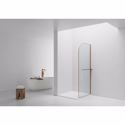 Aloni Douchewand - 100x200cm - afgeronde hoeken - veiligheidsglas - 6mm - handdoekhouder - koper geborsteld DW-100BC