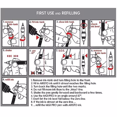 Aristo AR-64400 tekenpen set MG1 PRODe basis tekenset. De vul- en schoonmaak instructie zijn bij de set bijgesloten. Deze set is uitermate geschikt voor technisch en creatief tekenen.4 inktpennen van verschillende diktes: 0,25, 0,35, 0,5 en 0,7 mmFles 23 ml inkt (zwart)De vul- en schoonmaak instructie zijn bij de set bijgeslotenUitermate geschikt voor technisch en creatief tekenen