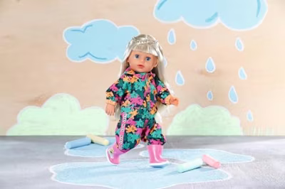 Baby Born regenpak met 'easy-fit' style zodat het regenpak eenvoudig om de pop (36 cm) past. Inclusief een paar regenlaarzen. Geschikt voor kinderen vanaf 3 jaar.