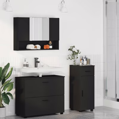 Badkamermeubelset 3 pcs Zwart 76,5 x 35 x 64 cm Bewerkt hout