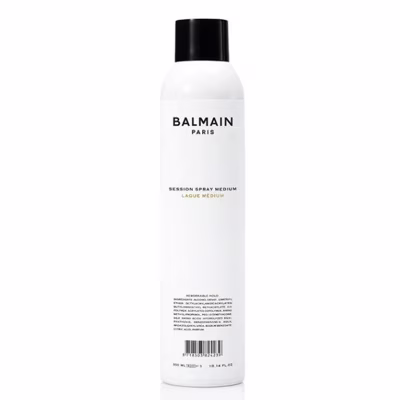 Balmain Hair Couture Styling - Session Spray Medium. Deze medium hairspray is perfect voor het creëren van een flexibele haarstijl die de hele dag blijft zitten. De krachtige combinatie van zijdeproteïnen en arganolie hydrateert je haar optimaal en zorgt ervoor dat het beschadigde, droge en zwakke haar wordt beschermd tegen schadelijke invloeden van buitenaf. Geschikt voor alle haartypen en vrij van sulfaten en parabenen.