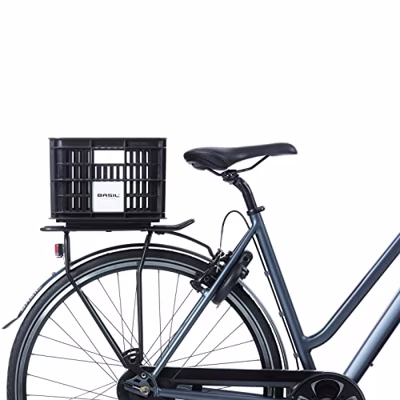 Basil fietskrat L, gerecycled kunststof, groot formaat, incl. kratclicker, geschikt voor MIK, Racktime, I-Rack, MonkeyLoad en AtranVelo platen (apart verkrijgbaar), excl. bev. materiaal, max. gewicht afhankelijk van max. toelaatbaar gewicht drager, 40L, black FD1701D fietskrat zwart 40L Veilig onderweg Geen zware boodschappentassen meer aan je stuur of schooltas op je rug. Met de hippe Basil fietskrat neem jij jouw spullen veilig mee. De krat L heeft een groot formaat. De krat wordt geleverd met een contrasterende kratklikker. Zo valt je fiets lekker op. Handig in de overvolle fietsparkeerplaatsen. Klik de klikker op elke plek op de krat en je bent klaar om te gaan!