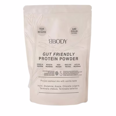 Het Gut Friendly Protein Powder van BBODY is speciaal ontwikkeld voor mensen die op zoek zijn naar een hoogwaardige, vegan proteïne die gemakkelijk verteerbaar is. Dit proteïnepoeder combineert voedzame plantaardige ingrediënten om je lichaam te ondersteunen zonder het spijsverteringsstelsel te belasten. Met BBODY's focus op pure kwaliteit bevat dit poeder geen nasties zoals kunstmatige toevoegingen of sucralose. Perfect voor dagelijks gebruik als aanvulling op een actief en gezond leven, en ideaal voor smoothies, shakes of andere recepten.