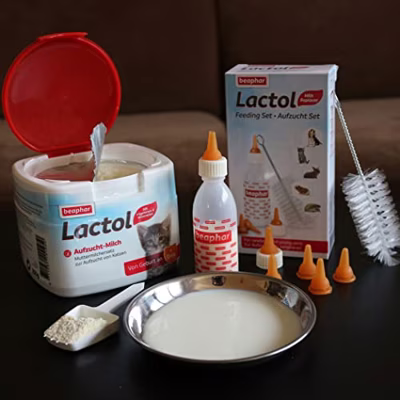 Beaphar Kitty Milk Lactol 250 grKitty Milk is een volledige, volwaardige voeding voor moederloze kittens van 1 tot 35 dagen. Kitty Milk is tevens geschikt als bijvoeding voor de poezenmoeder tijdens de dracht en de zoogperiode. Gewone melk voorziet niet in de behoefte aan eiwit en vet, waardoor tekorten kunnen ontstaan.Samenstelling:Melk en -bijproducten, oliën en vetten, mineralen.Analytische bestanddelen: Ruw eiwit 32%, Ruwe celstof 0%, Ruw vet 24%, Ruwe as 7%, Vocht 3,5%, Calcium 0,8%, Fosfor 0,7%, Natrium 0,5%, Magnesium 0,16%, Kalium 1,5%, Docosahexaeenzuur (DHA) 0,1%Toegevoegde stoffen (per kg):Vit. A 25000 IE, Vit. B1 5 mg, Vit. B2 3 mg, Vit. B6 3 mg, Vit. B12 60 μg, Vit. C 620 mg, Vit. D3 2000 IE, Vit. E 210 IE, Biotine 50 μg, Vit. K3 3 mg, Taurine 3000 mg, Calcium D-pantothenaat 10 mg, Niacine 20 mg, DL-Methionine 3000 mg, Fe (IJzersulfaat monohydraat) 80 mg; I (3b201) 0,25 mg; Mn (Mangaansulfaat monohydraat) 30 mg; Se (Natriumseleniet) 0,2 mg; Zn (3b605) 50 mg. AntioxidantenInhoud: 250 gr