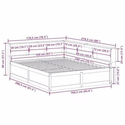 Bed met boekenkast zonder matras grenenhout wasbruin 160x200 cm