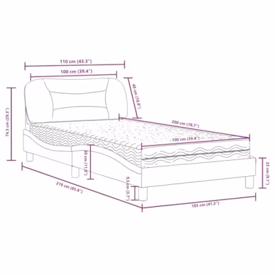 Bed met matras kunstleer zwart en wit 100x200 cm