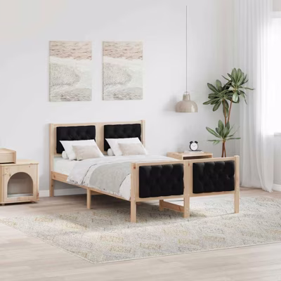 Dit moderne bedframe heeft een elegant en hedendaags ontwerp dat aansluit bij elke slaapkamer. Met zijn strakke lijnen en gestructureerde vorm is het geschikt voor zowel minimalistische als stijlvolle interieurs. Het frame van massief grenenhout geeft kracht en stabiliteit, perfect voor rustgevende nachten. De zachte polyester bekleding zorgt voor een balans tussen functionaliteit en stijl en biedt een gezellige plek die je bij koud winterweer of met een verfrissende zomerse bries kunt gebruiken. Massief grenenhouten frame Gemaakt van stevig massief grenenhout, biedt dit bedframe uitstekende stabiliteit voor een goede nachtrust. De natuurlijke kracht van het hout zorgt voor langdurig gebruik, waardoor het jarenlang een blikvanger is in je slaapkamer. Strak polyester hoofdbord Het bed heeft een mooi ontworpen hoofdbord dat bekleed is met hoogwaardige polyester, waardoor het een stijlvolle en comfortabele aanvulling is. Het hoofdbord biedt zachte ondersteuning voor lezen of relaxen in bed en past bij elke interieurstijl. Vaste lattenbodem Dit bed is voorzien van een stevige lattenbodem die je matras goed ondersteunt, zodat de levensduur wordt verlengd. De stevige latten zorgen voor een goed slaapoppervlak en bieden maximaal comfort en rugondersteuning. Veelzijdige vierkante poten De poten van massief grenenhout zijn minimalistisch en voegen een moderne flair toe. Ze zijn speciaal ontworpen om het gewicht van het bedframe te ondersteunen en zorgen voor duurzaamheid die goed past bij verschillende interieurstijlen. Onderhoud en verzorging Om het bed mooi te houden, veeg je het af met een vochtige doek. Regelmatig onderhoud helpt de uitstraling en de kwaliteit van het bed in de loop der tijd te behouden.