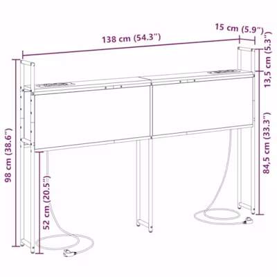 Bergend Hoofdeinde met Oplaadstation Zwart eiken 135 cm