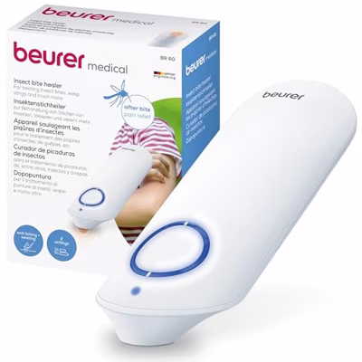 Beurer BR60 insectenbeetheler Insectenbeten en -steken zijn op natuurlijke wijze moeilijk te vermijden. Voor een behandeling zonder chemische toevoegingen werd de insectenbeetheler BR 60 ontwikkeld. De must-have voor thuis en onderweg.Helpt tegen jeuken zwelling Snel opwarmende keramische verwarmingsplaat Modern, handzaam ontwerpDankzij de warmteontwikkeling versnelt de genezingZonder chemische stoffen, alleen door middel van warmte en daarom ook geschikt voor zwangere vrouwen2 verschillende programma's: Programma 1: voor het eerste gebruik en personen met een gevoelige huid, Programma 2: voor regelmatig gebruikKleur: wit