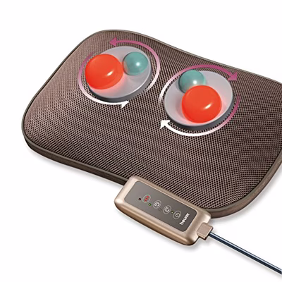 Beurer MG147 Shiatsu massagekussenHet massagekussen is vast te zetten, heeft een verwarmingsfunctie en een handschakelaar. Veelzijdig inzetbare ontspanningsmassage voor schouders, nek, rug en benen. Ontspannend en aangenaam - het massagekussen is veelzijdig inzetbaar en de bediening met de handschakelaar is eenvoudig en ongecompliceerd.Ontspanningsmassage voor schouders, nek, rug en benenUniversele kussenvorm, wasbare hoesOppervlak van ademend meshMet licht- en verwarmingsfunctieOppervlak van ademend meshMet licht- en verwarmingsfunctie4 Shiatsu massagekoppen - paarsgewijs roterendRechts-/links draaiende massagekoppenVerwijderbare hoes, wasmachine wasbaar op 30°CEenvoudige bediening met handmatige bedieningsschakelaarKlittenbandsluiting voor de bevestiging12 WattKleur: bruin