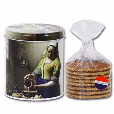 Bewaar al je favoriete lekkernijen in deze prachtige bewaarblik met de afbeelding van Het Melkmeisje, een beroemd schilderij van Vermeer. Het bewaarblik heeft een diameter van 10 centimeter en een hoogte van 11,5 centimeter, waardoor het perfect is voor het opbergen van koekjes, stroopwafels of andere lekkernijen. Het blik is gemaakt van duurzaam metaal en heeft een stevige sluiting om ervoor te zorgen dat je etenswaren vers blijven. Met dit bewaarblik voeg je niet alleen een stukje kunst toe aan je keuken, maar houd je ook je voorraad georganiseerd en je lekkernijen vers. Bestel nu dit unieke bewaarblik en geniet elke dag van je favoriete snacks!