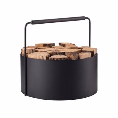 Deze stalen haardhoutmand van Blomus met eiken handvat is dé perfecte plek om brandhout te bewaren. Met een diameter van 45 cm en hoogte van 42 cm kun je veel hout in deze mand kwijt. Vervelende spaanders en stof blijven binnen in de mand en dwarrelen niet rond.