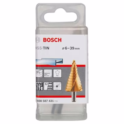 Meer over Bosch Accessories 2608587431 HSS Getrapte boor 6 - 39 mm TiN Gezamenlijke lengte 93.5 mm 3 vlakken schacht 1 stuk(s)
