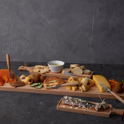De handvatten zijn gemaakt van rustiek beukenhout, wat niet alleen een natuurlijke uitstraling geeft, maar ook zorgt voor een comfortabele grip. Deze combinatie van functionaliteit en design maakt de set een prachtige aanvulling op elke keuken of borreltafel.