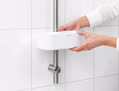Brabantia renew douche caddy whiteOf het nu gaat om shampoo, douchegel, huidverzorgingsproducten of scheermesjes... Al je doucherituelen zijn georganiseerd met deze handige Brabantia ReNew douche caddy. Bevestig hem eenvoudig aan de douchestang en zet hem op de ideale hoogte. Een mooie truc om je badkamer netjes en mooi te houden!Voordelen & KenmerkenGeorganiseerd - houdt je douchespulletjes bij elkaar (max. 2 kilo).Ruimtebesparend - compact design.Flexibel - past op gangbare douchestangen (Ø 16 - 28 mm, met minimaal 15 mm afstand tussen stang en muur).Alles zo droog - bodem met gaten voor afvoer van water.Ideale hoogte - kies zelf hoe hoog je de caddy bevestigt.Makkelijk bevestigen - boren of tape niet nodig.Handig ophangen - inclusief montage-instructies.Ideaal voor vochtige ruimtes - gemaakt van corrosiebestendige materialen.Probleemloos gebruik - 5 jaar garantie en service.Duurzamere keuze - 100% recyclebaar na gebruik.Afmetingen:Hoogte: 7,5 cmLengte: 24,4