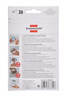 Brennenstuhl Magnetische montageplaat BR 1000 voor RookmelderBeschrijvingMagnetische montageplaat BR 1000.Montage van uw rookmelder zonder boren of schroeven.Geen schade aan plafond of leidingen.Heel eenvoudig en snel te monteren dankzij twee zelfklevende magneetplaten.Eenvoudig verwijderen van rookmelder (voor testen, vervangen van batterij etc.).Niet geschikt voor ondergronden met vinyltapijten, schuimblastic, antikleeflagen, siliconelagen of Teflon-lagen. Slechts onder voorwaarden geschikt voor rookmelders met een diameter van minder dan 8 cm.