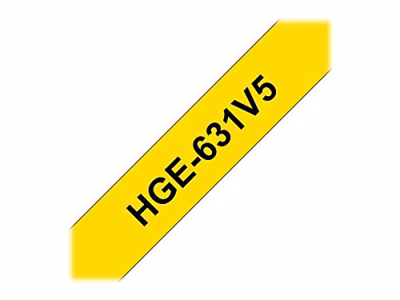 Meer over Brother HGe-631V5 Labeltape Set van 5 stuks Tapekleur: Geel Tekstkleur: Zwart 12 mm 8 m