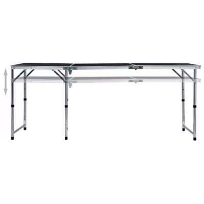 Deze inklapbare campingtafel met praktische handgreep is handig in keukens, op terrassen, in tuinen en tijdens picknicks of kampeertochten. De tafelhoogte kan worden aangepast tot 55 cm, 62 cm en 70 cm. De kampeertafel is lichtgewicht. Dankzij het inklapbare ontwerp is de tafel eenvoudig mee te nemen en kan hij snel worden opgeborgen wanneer hij niet in gebruik is. De draaggreep maakt het erg gemakkelijk om de tafel mee te nemen als je gaat picknicken of kamperen. Dankzij de stevige structuur heeft deze campingtafel een draagvermogen van 30 - 50 kg. Het metalen frame en het robuuste MDF tafelbald maakt hem zeer stabiel en duurzaam.
