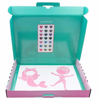 Heb je wel eens een tekening ingekleurd dankzij het blazen op een pen? Het klinkt heel gek, maar de Gabby's Poppenhuis Blaaspennen Set Deluxe maakt het inkleuren van tekeningen nog makkelijker. Door te blazen aan de achterkant van de pen geef je kleur aan je favoriete katten en Gabby. Maak een mooie tekening van Pandy Poek, Meerminkat of Kitty Fee. Dankzij de sjablonen zorg je ervoor dat je altijd binnen de lijntjes kleurt, je ouders zullen trots zijn op hoe goed je kan kleuren en kan je nieuwe kunstwerk helemaal bij elkaar blazen, hoe leuk is dat! De doos kan gebruikt worden als een onderlegger, zo blijft de tafel schoon als je per ongeluk naast de tekening blaast. De set bestaat uit: • Twaalf blaaspennen • Houder voor de pennen • Verschillende kartonnen stencils •Groot en klein wit papier • Instructies