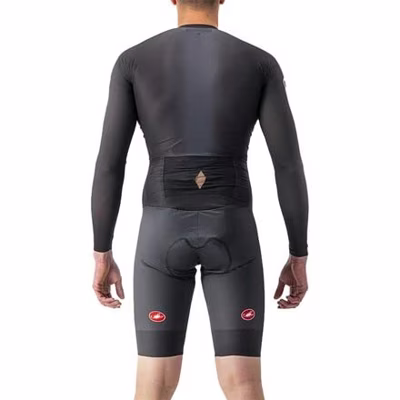 Dit Castelli Body Paint 4.X Speedsuit is ontworpen om de allersnelste te zijn tijdens je race tegen de klok en bied een geweldige pasvorm in de TT-houding. Ook beschikt het speedsuit over gladde materialen, minder naden, en lange pijpen met platte uiteinden en platte griptape om ze op hun plek te houden. De lange mouwen hebben een duimgat zodat ze niet omhoog kruipen. Op de achterkant is een windvrij venster voor het wedstrijdnummer. Ook is het speedsuit elastisch en luchtdoorlatend, in tegenstelling tot bij andere pakken in de markt. Let op: houdt u er rekening mee dat de Castelli kleding kleiner dan normaal valt.