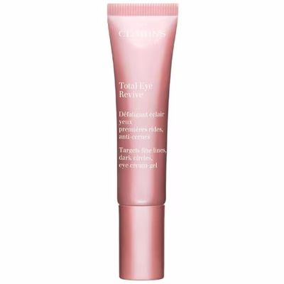 De Clarins Total Eye Revive crème vermindert fijne lijntjes rond de oogcontour en pakt tekenen van vermoeidheid aan. Deze gel-achtige textuur is uitermate geschikt voor alle huidtypen en geeft een frisse uitstraling. Dankzij de cryo-metalen applicator, die perfect is afgestemd op de vorm van de oogcontour, vermindert het vocht en zwelling. Ingrediënten zoals extracten van planten zorgen voor een stralendere en egalere huid rond de ogen. Laat je ogen weer stralen met een verhelderde en gladde oogcontour.