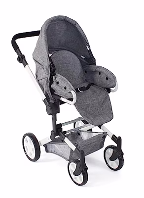 Combi-poppenwagen Jara - Grey Jeans Voor de kleine poppenouder met grote plannen! Op zoek naar een poppenwagen die net zo veelzijdig is als de speelavonturen van je (klein)kind? Maak kennis met de Combi-poppenwagen Jara ! Dit moderne topmodel van Bayer Chic 2000 is niet alleen een lust voor het oog, maar ook een praktische alleskunner. Of het nu een stevige wandeling door de huiskamer is of een uitgebreide citytrip door de tuin, Jara is er klaar voor! Van kinderwagen naar buggy - en weer terug! Waarom kiezen als je alles kunt hebben? De Jara tovert moeiteloos van wandelwagen om naar buggy. Met een simpele beweging kan de pop zowel naar voren als naar achteren kijken. Zo kan de poppenmoeder (of vader!) zelf bepalen of de kleine poppenbaby de wereld ontdekt of lekker veilig oogcontact houdt met de chauffeur. Slim design, groot gemak Uitneembare wiegbak met handige handgrepen - perfect als draagmandje. Kijkvenster in de kap - zo hou je de pop altijd in de gaten, ook als ze 'stiekem' een dutje doet. Zwenkwielen voor soepel bochtenwerk - van woonkamer tot speeltuin zonder brokken. In hoogte verstelbare duwstang (47 tot 78 cm) - groeit mee met de poppenouder. Ruime opbergmand - voor luiers, flesjes en andere 'onmisbare' accessoires. Geschikt voor poppen tot 50 cm - de meeste poppen passen er met gemak in. Makkelijk in te klappen - ideaal voor opbergen of meenemen naar opa en oma. Voor wie is de Jara? Deze stijlvolle poppenwagen is geschikt voor kinderen vanaf 3 jaar. Perfect voor kleine verzorgers in de dop! Of het nu een stoere jongen of een zorgzame meid is - met de Jara wordt spelen nét een tikkeltje echter. Afmetingen : ca. 70 x 41 x 85 cm (L x B x H) Gewicht : 4,1 kg Met de Combi-poppenwagen Jara geef je jouw (klein)kind een speelervaring om nooit te vergeten. Bestel 'm vandaag nog en laat de poppenavonturen beginnen!