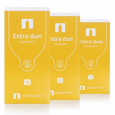 Extra dun condooms: bijna niet te voelen Kan veilig vrijen lekker zijn? Reken maar. Ons huismerk condooms heeft allerlei modellen waarmee je beschermd bent en volop geniet. Met het Extra dun condoom kom je zo dicht mogelijk bij het echte gevoel. Waarom kiezen voor dit model? Condoom.nl heeft sinds kort een eigen lijn condooms. Deze worden in een gerenommeerde fabriek gemaakt, gebruikmakend van de beste latex. De condooms worden uitvoerig getest voordat ze, voorzien van een CE 0123-certificering, worden verpakt en ons magazijn bereiken. Ze beschermen je net zo goed tegen soa's en zwangerschap als de bekende merken, maar zijn stukken voordeliger. Het model Extra dun is er voor mannen die het natuurlijke gevoel zoveel mogelijk willen nabootsen. Deze condooms maken veilig vrijen net ietsje lekkerder. Bestel ze en ervaar zelf het verschil. Voor wie geschikt? Heb je standaard condooms geprobeerd maar heb je het gevoel dat er iets ontbreekt? Dat je minder voelt? Als het latex iets dunner is, kan zij zijn mannelijke textuur beter voelen - en dat is opwindend. Omgekeerd voelt de man méér, waarmee een hoogtepunt makkelijker bereikbaar is. De Extra dun condooms zijn er voor levensgenieters die goed beschermd willen vrijen.