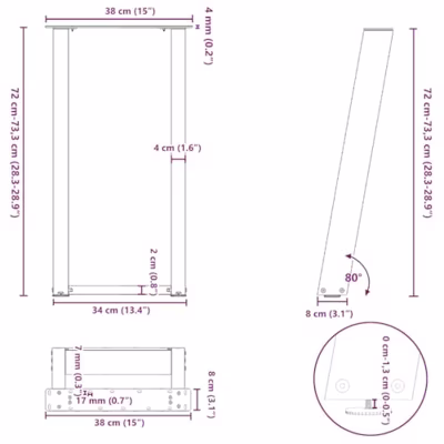 Deze tafelpoten combineren vorm en functie. Het is een ideale keuze voor het personaliseren van uw consoletafel. Duurzaam materiaal: deze meubeltafelpoot is gemaakt van gepoedercoat staal, waardoor hij stevig en duurzaam is.Stevige structuur: het 80 graden hellende ontwerp van de metalen tafelpoot zorgt ervoor dat hij een zwaar tafelblad kan dragen.Praktisch ontwerp: deze tafelpoot voor de console is voorzien van verstelbare voetnivelleerders, die zorgen voor stabiliteit, zelfs op oneffen vloeren, en krassen op de vloer tot een minimum beperken. Bovendien is de beugel voorzien van voorgeboorde gaten en meegeleverde schroeven, die kunnen worden gebruikt om de poot aan het tafelblad te bevestigen (niet inbegrepen), waardoor hij eenvoudig te monteren is.Moderne esthetiek: de tafelpoot heeft strakke lijnen en een geometrisch ontwerp om de algehele uitstraling van het meubel te verbeteren. En het past goed bij elk tafelblad van een geschikt formaat. Goed om te weten:De levering bevat alleen tafelpoten, het tafelblad is niet inbegrepen.