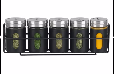 Organiseer je favoriete kruiden stijlvol met dit stijlvolle 5-delige zwarte kruidenrek van Cookinglife. Het rek bestaat uit een basis en vijf transparante strooibuisjes van glas met zwarte deksels, ideaal voor snelle toegang tot je favoriete kruiden tijdens het koken.