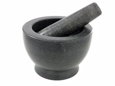 Maak kruiden, specerijen of knoflook moeiteloos fijn met deze robuuste vijzel van natuurgraniet met een diameter van 15 cm. Het ruwere oppervlak van graniet creëert ideale wrijving, waardoor malen snel en effectief verloopt. Door het compacte formaat staat hij stabiel op het aanrecht en is hij eenvoudig op te bergen na gebruik.